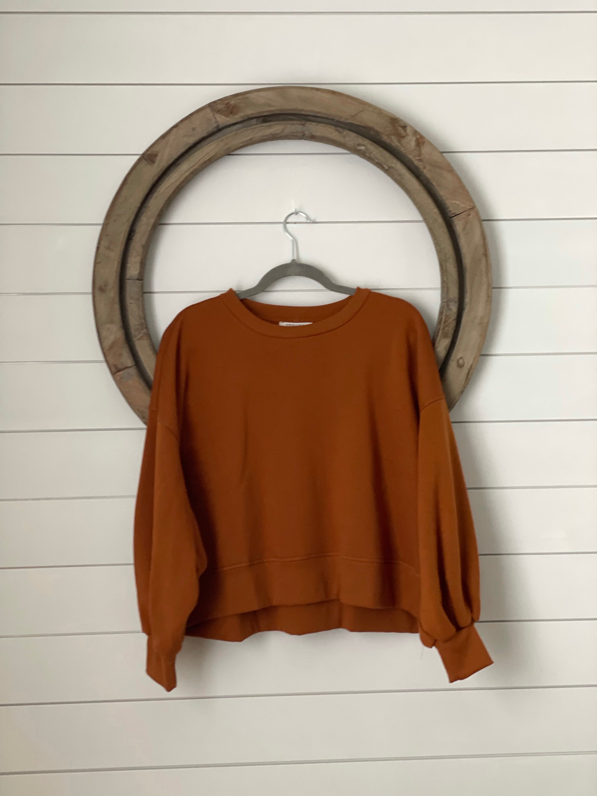BALLOON SLEEVE SWEATSHIRT - THICK & SOFT FABRIC TOTAL BODY LENGTH: 22.5"(FRONT), BUST: 54" approx. - MEASURED FROM SMALL