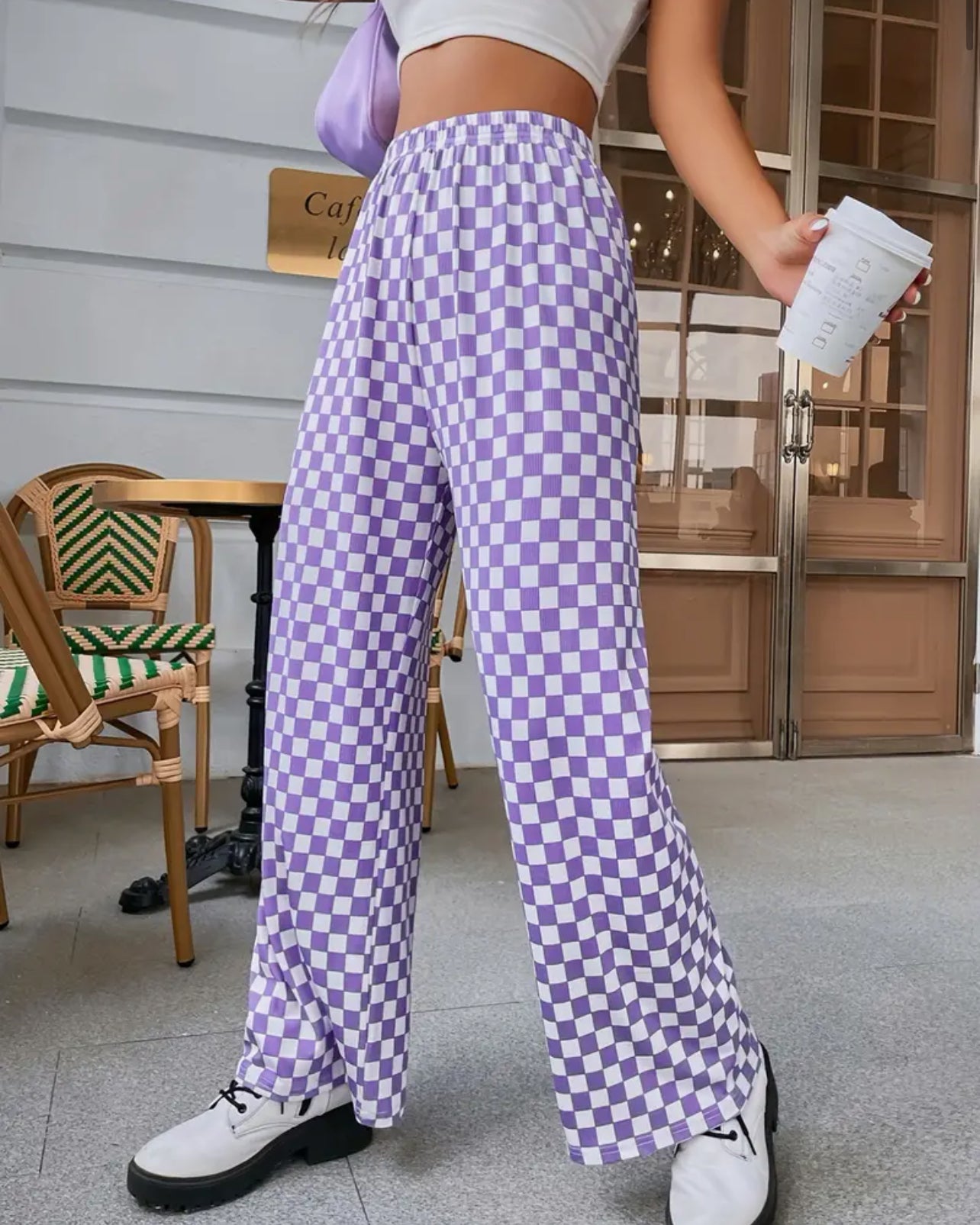 The Groovy Girl Pants feature a stylish checkered pattern, adding a retro touch to any outfit.