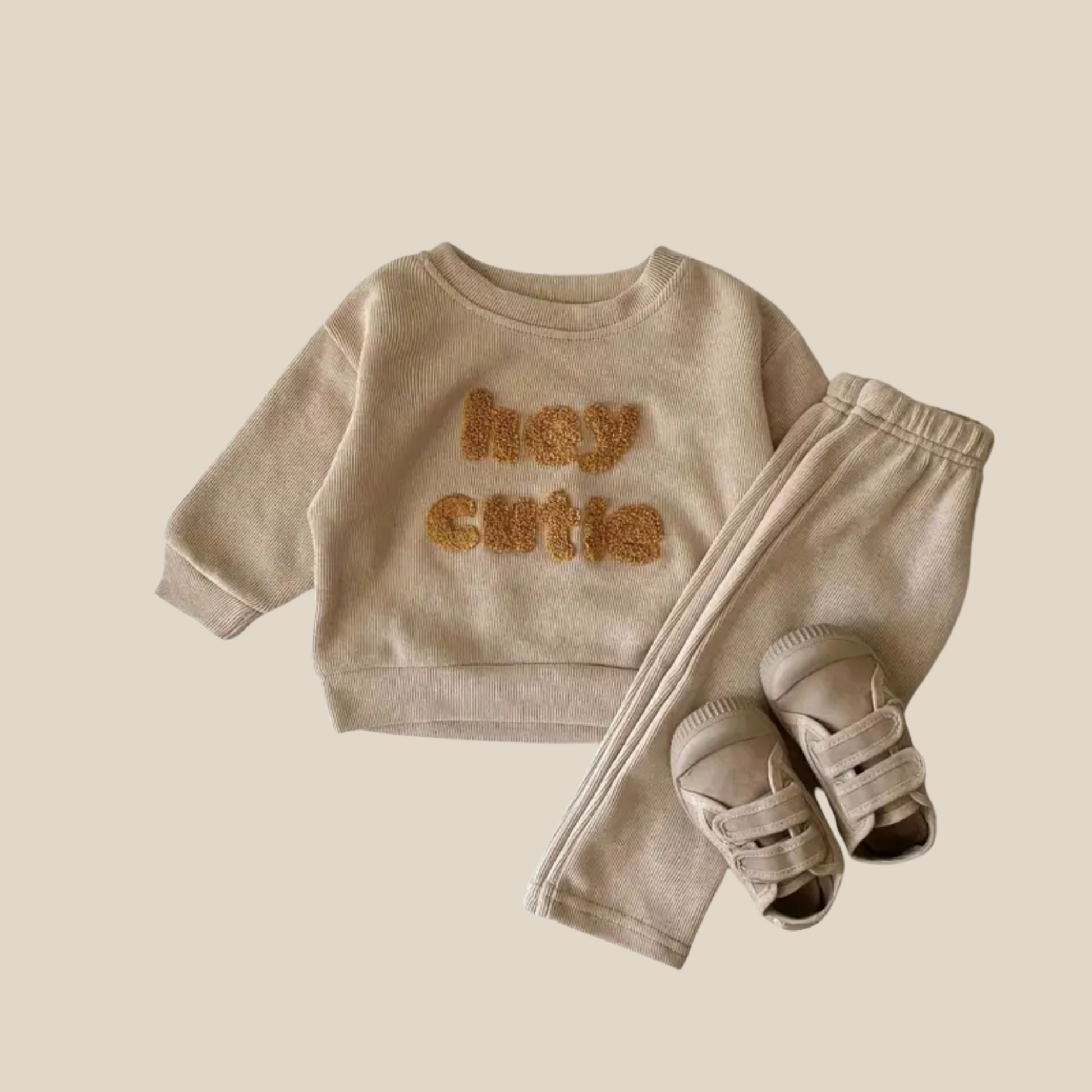 The Hey Cutie Sweatshirt and Pant Set is perfect for your little one. Made for both toddler boys and girls, this set features a charming and cozy embroidery design.