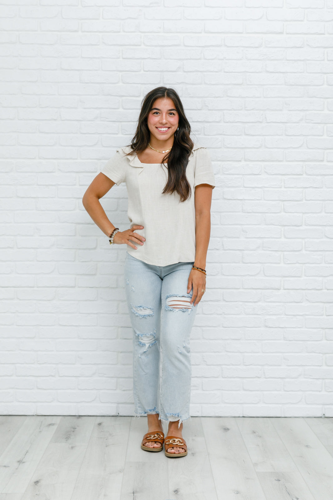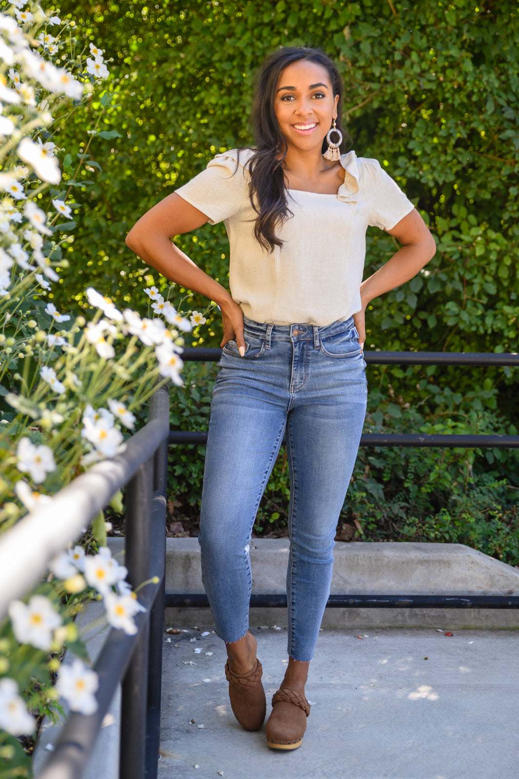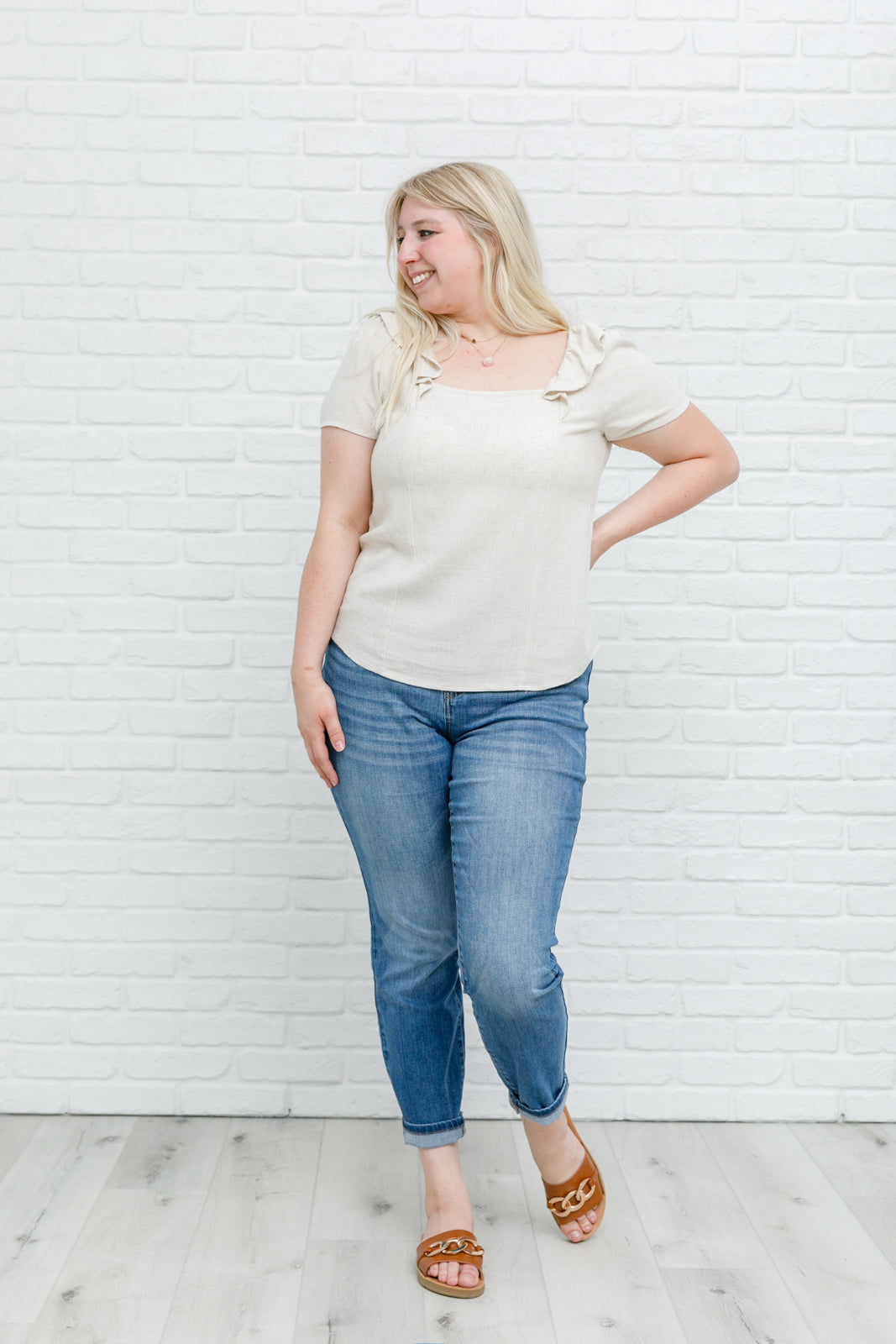 The Old Town Moments Top is so simple yet cute and will pair well with any bottoms! The square neckline and ruffle detail at the shoulders gives this top a feminine yet classy element. We promise you're going to love it!