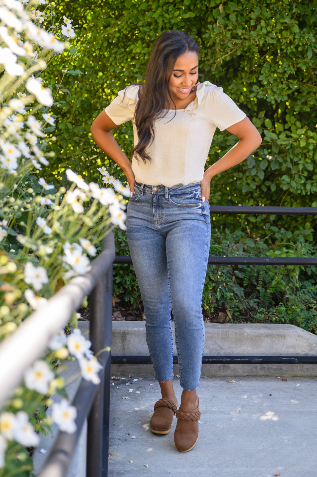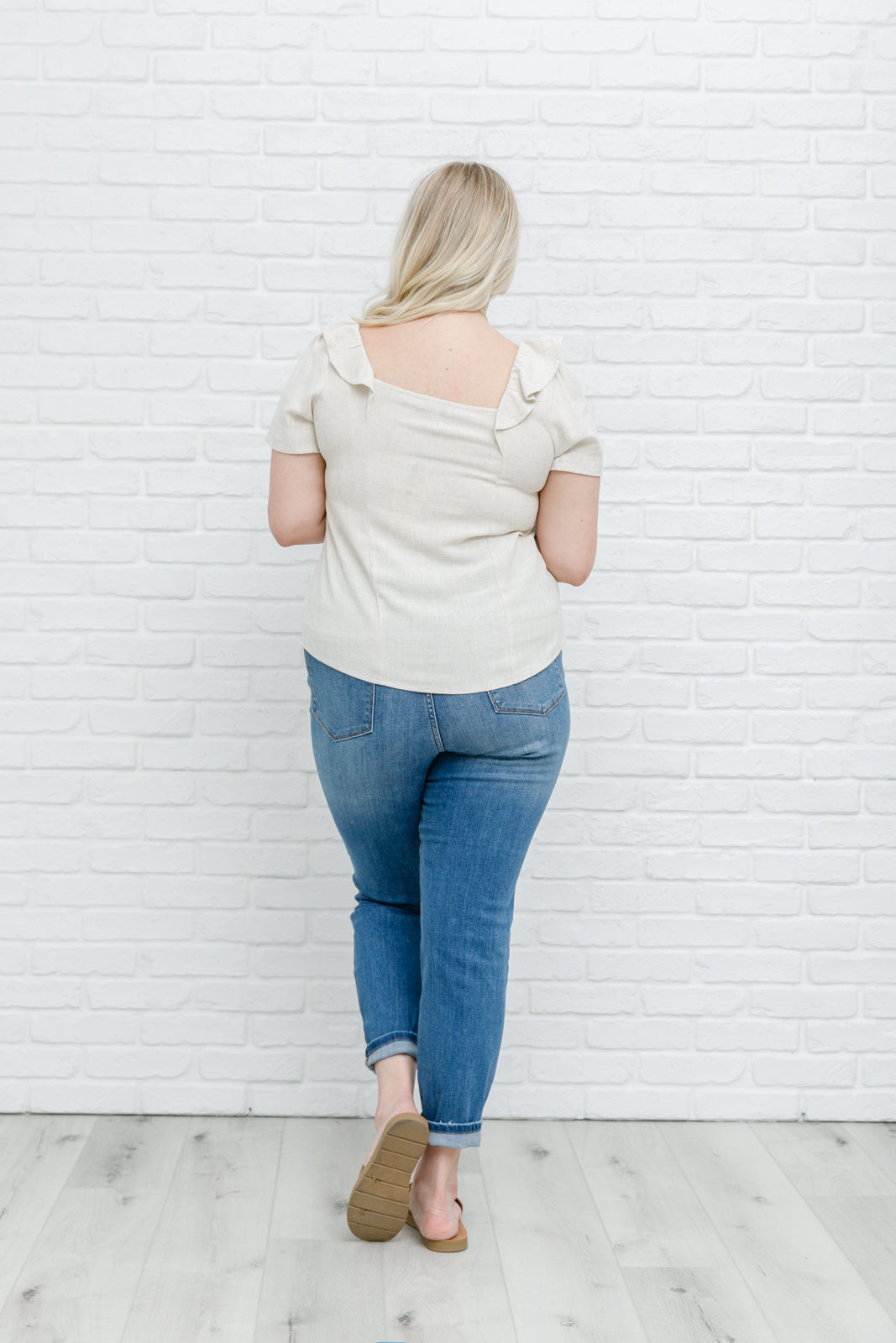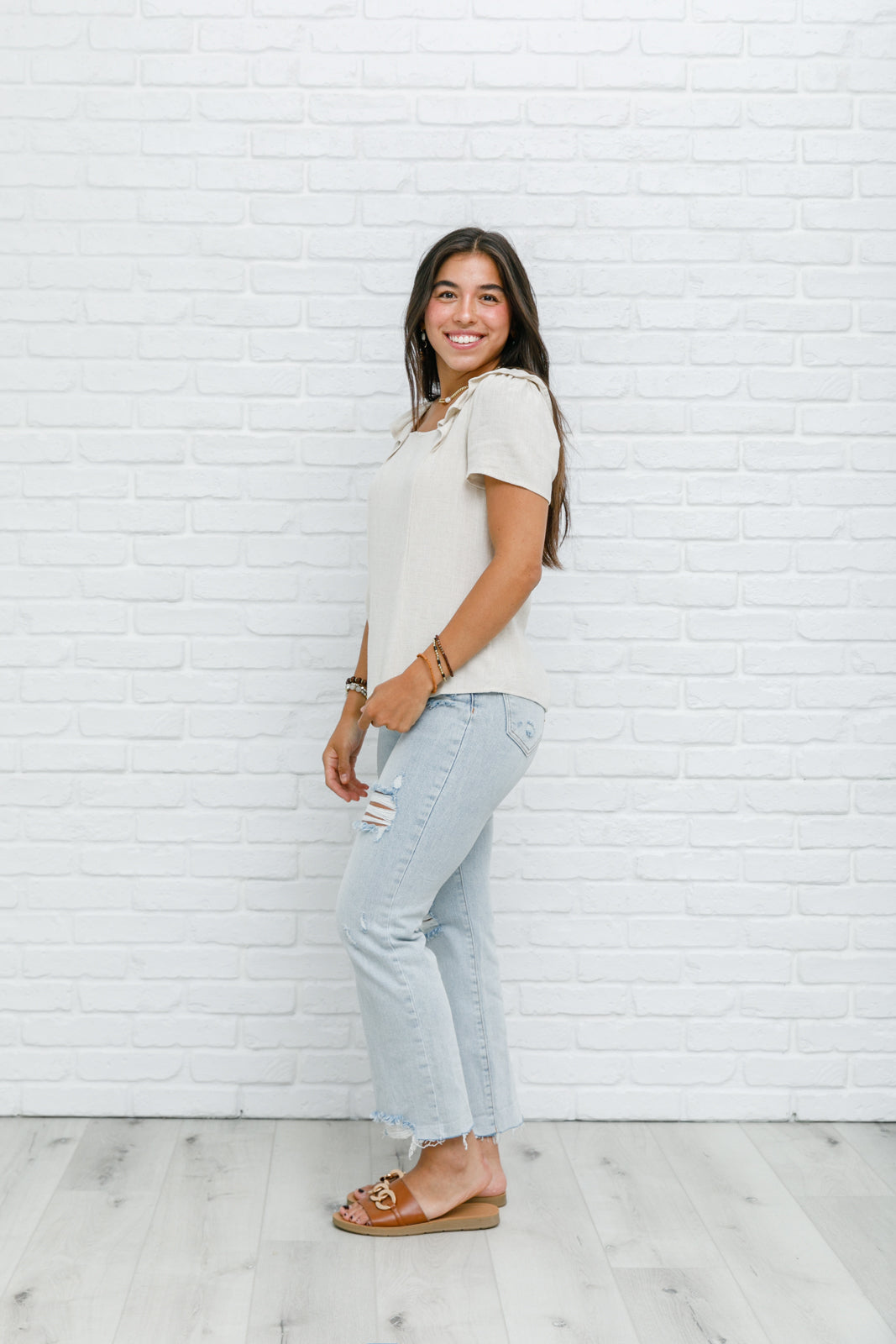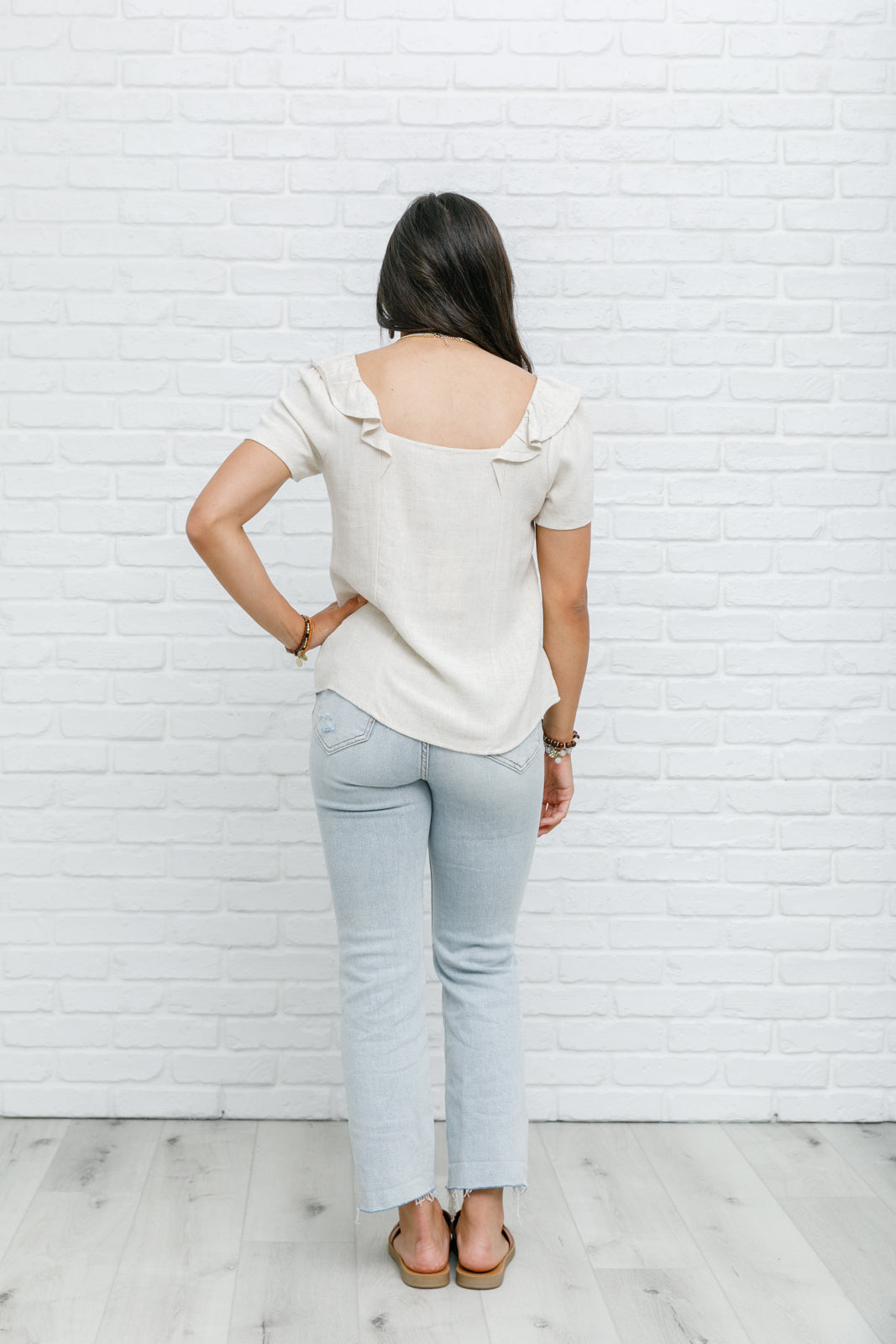 The Old Town Moments Top is so simple yet cute and will pair well with any bottoms! The square neckline and ruffle detail at the shoulders gives this top a feminine yet classy element. We promise you're going to love it!