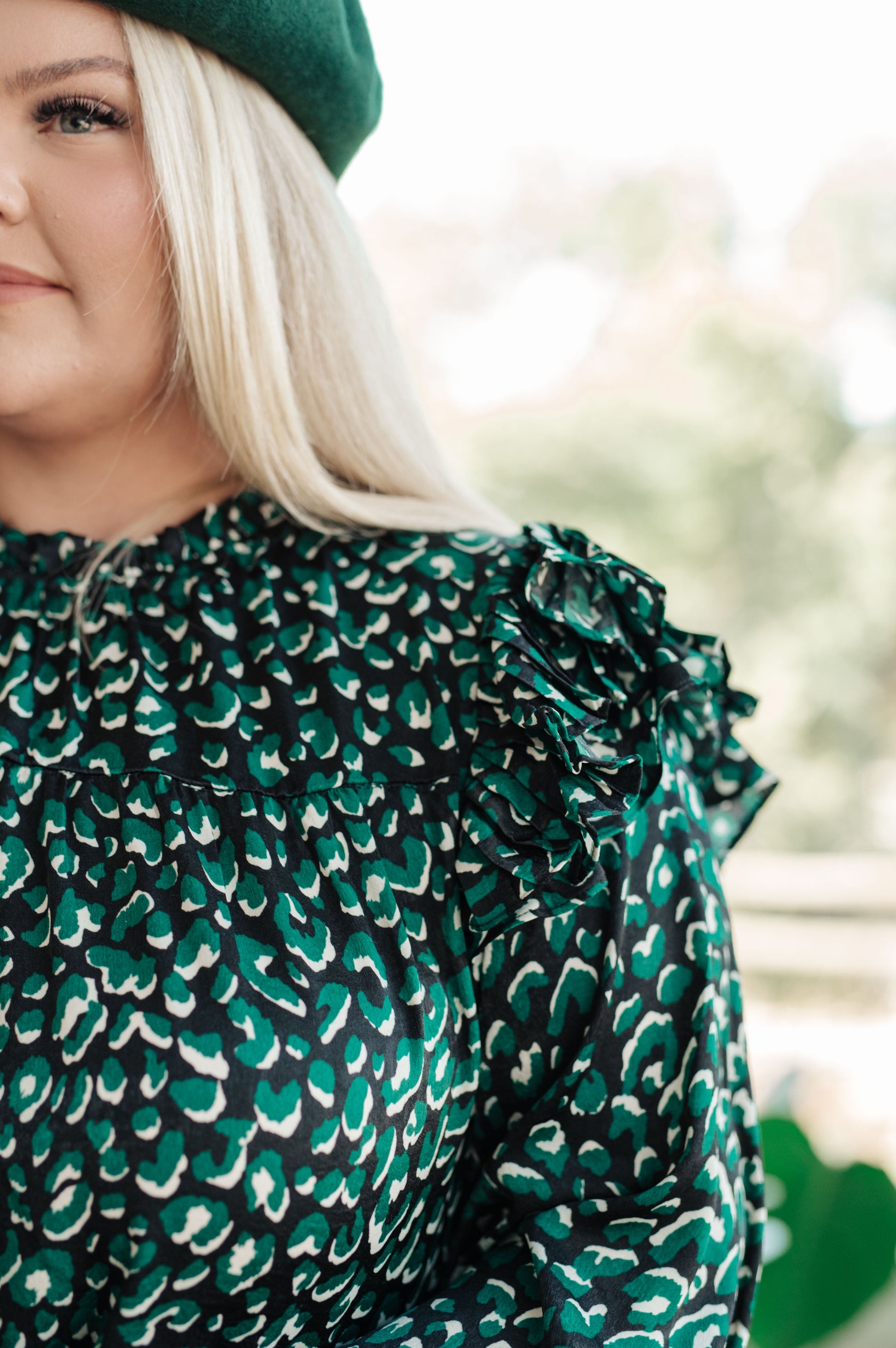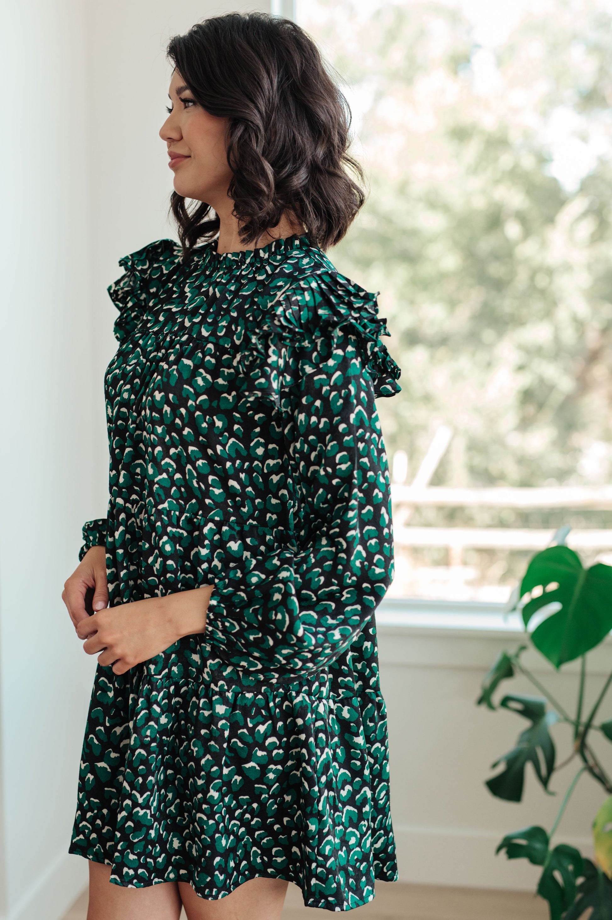 Look your best in this Right As Rain Ruffle Detail Dress! This dotted pattern satin print dress features a frill mock neckline, layered cap shoulders, long bubble sleeves, and ruffle detail to make a truly eye-catching look. Make a statement in this special dress - you'll be ready for any occasion.